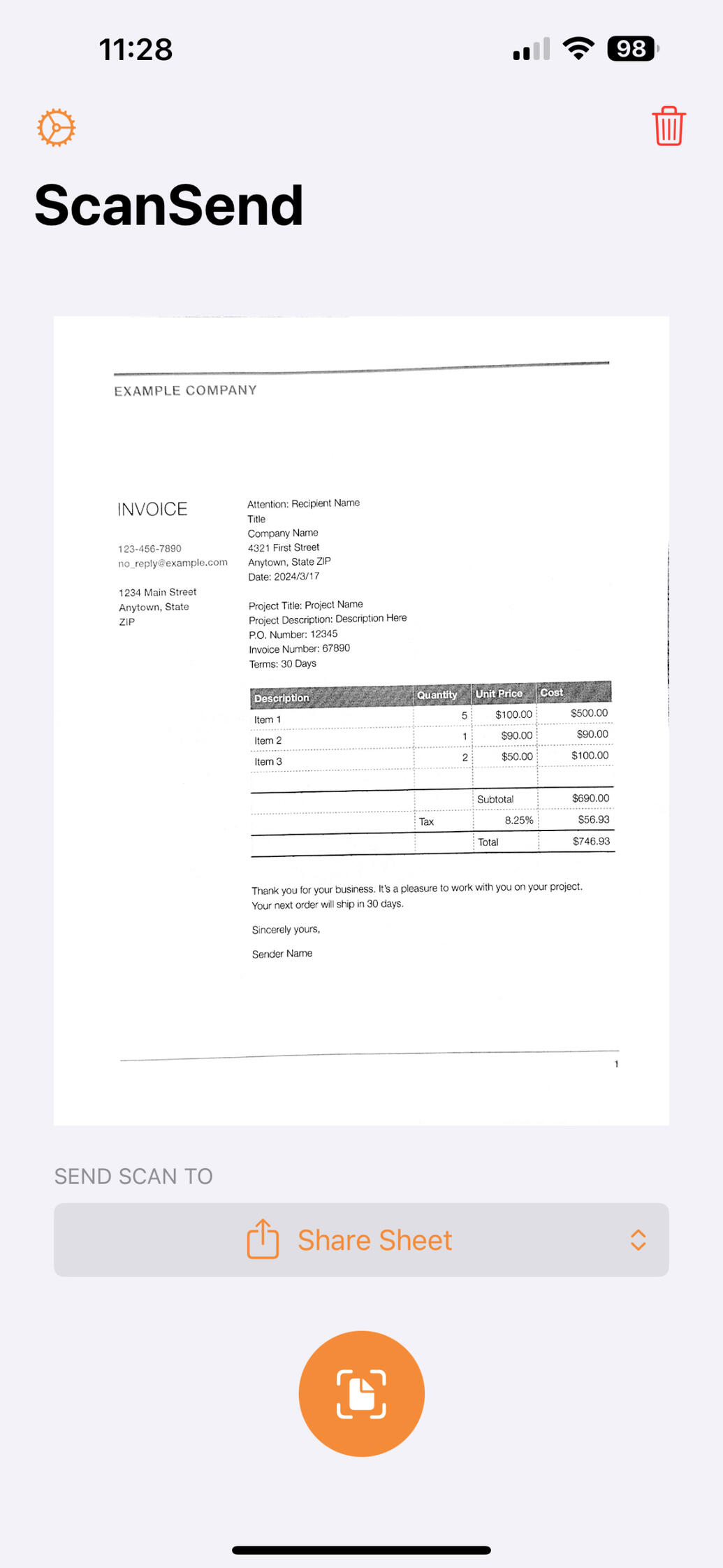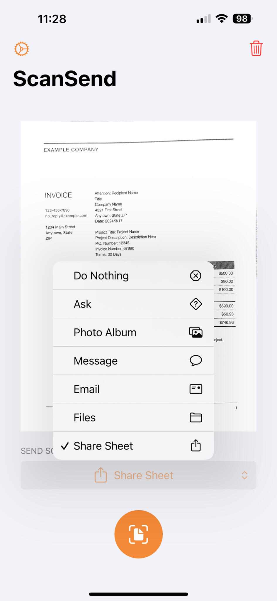 Last updated: 2024-03-17Briefly - Your privacy is super important. No personally-identifiable information is collected or sent by ScanSend. Your documents are your own and are never sent outside the app unless you manually export or share them.Not so briefly -1. No personally-identifiable information is collected and sent outside by the app. This includes the email required by the "Email Me" functionality.2. No documents are sent outside the app unless you manually share or export them. The app will only use developer APIs from Apple to make sure your shared document is sent to the destination you selected. You are encouraged to exercise discretion when sharing your documents since the app will only follow your indications for sharing and is not liable for where you're sending them.3. If you choose to contact support, your email is never shared with anyone else and is only used to reply to you.4. By using this app, you consent to this privacy policy.5. If this policy were to be changed at some point, this shall be reflected on the "Last updated" info at the top. For any questions, please use the contact form.